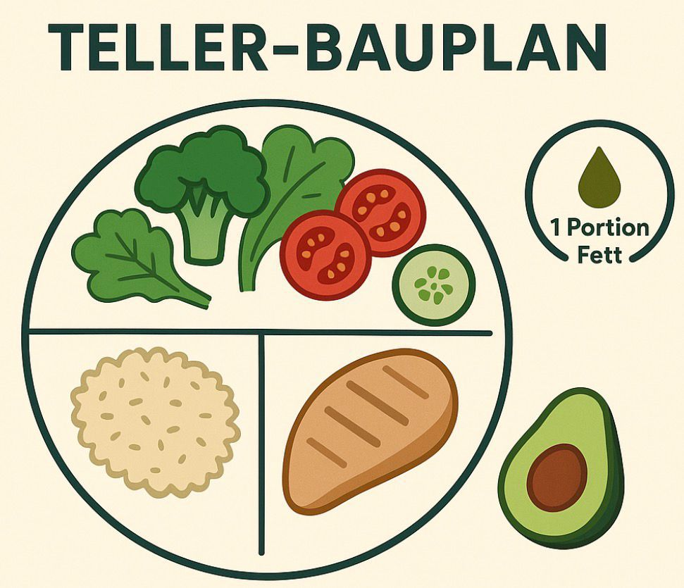 Der ESS-Einfach-Teller zeigt dir, wie du deine Mahlzeiten ausgewogen und stressfrei zusammenstellst.
